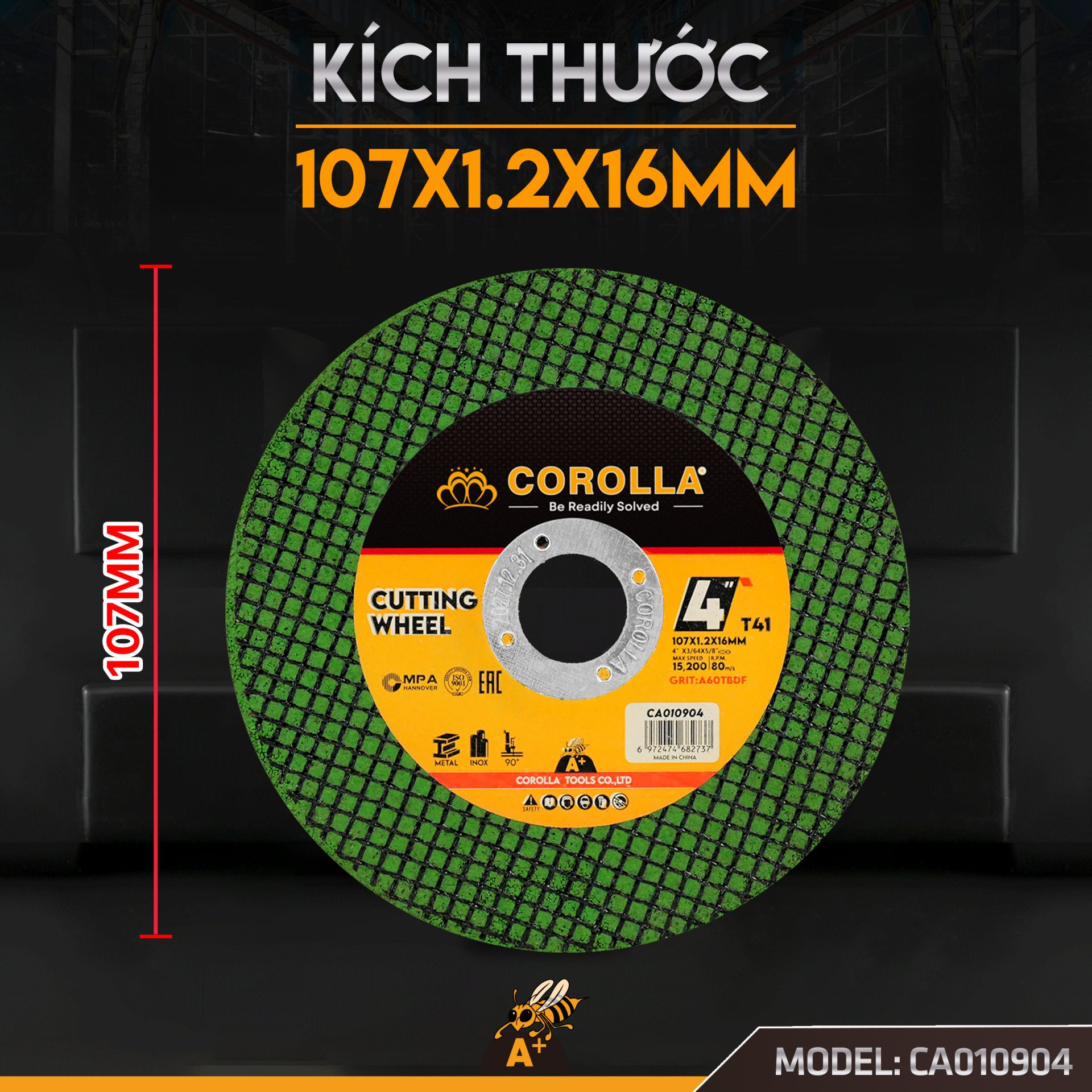 - Tên sản phẩm: Đá cắt kim loại COROLLA 107mm