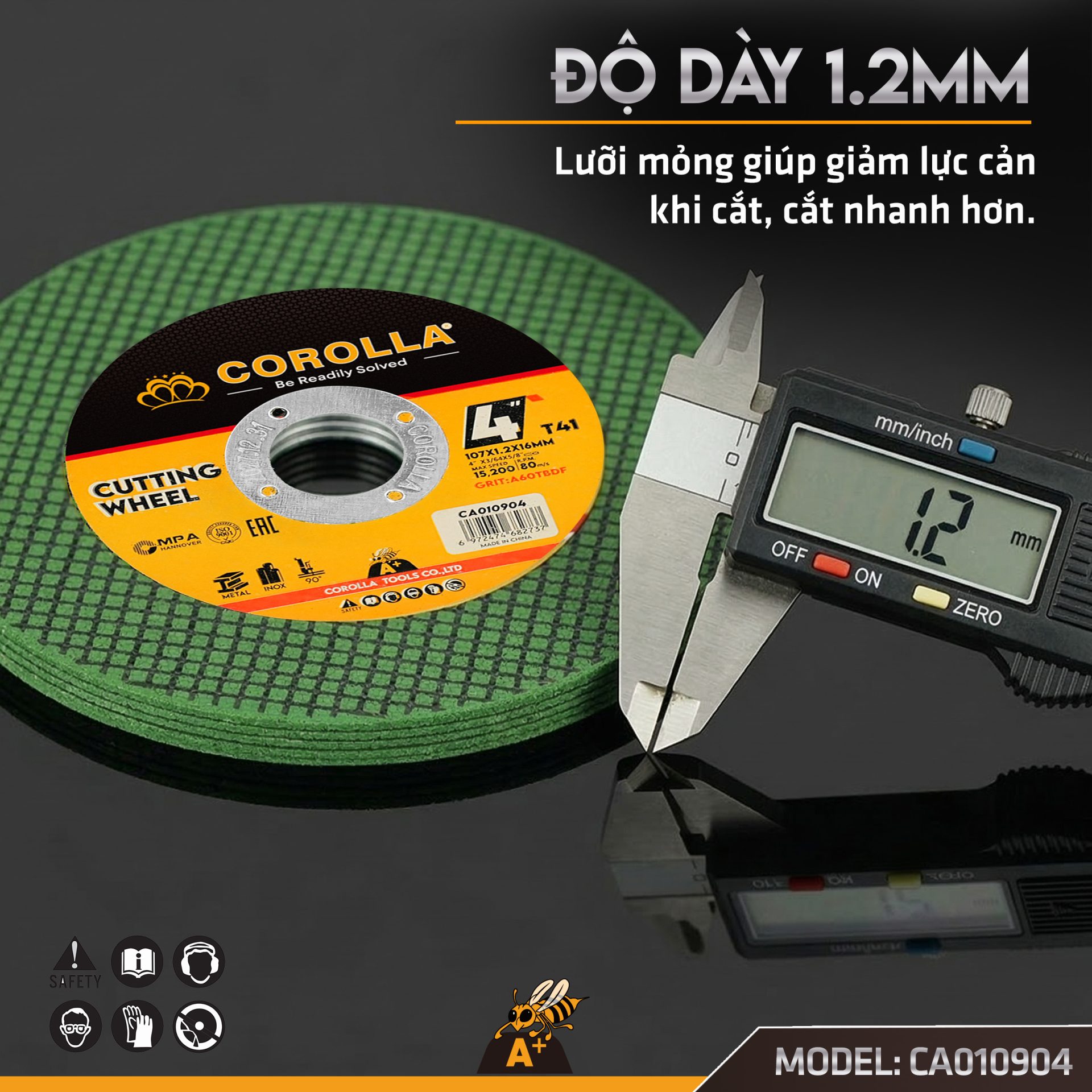 - Cắt nhanh – ít ba via: Thiết kế mỏng 1.2mm giúp đường cắt sắc gọn, giảm ma sát.