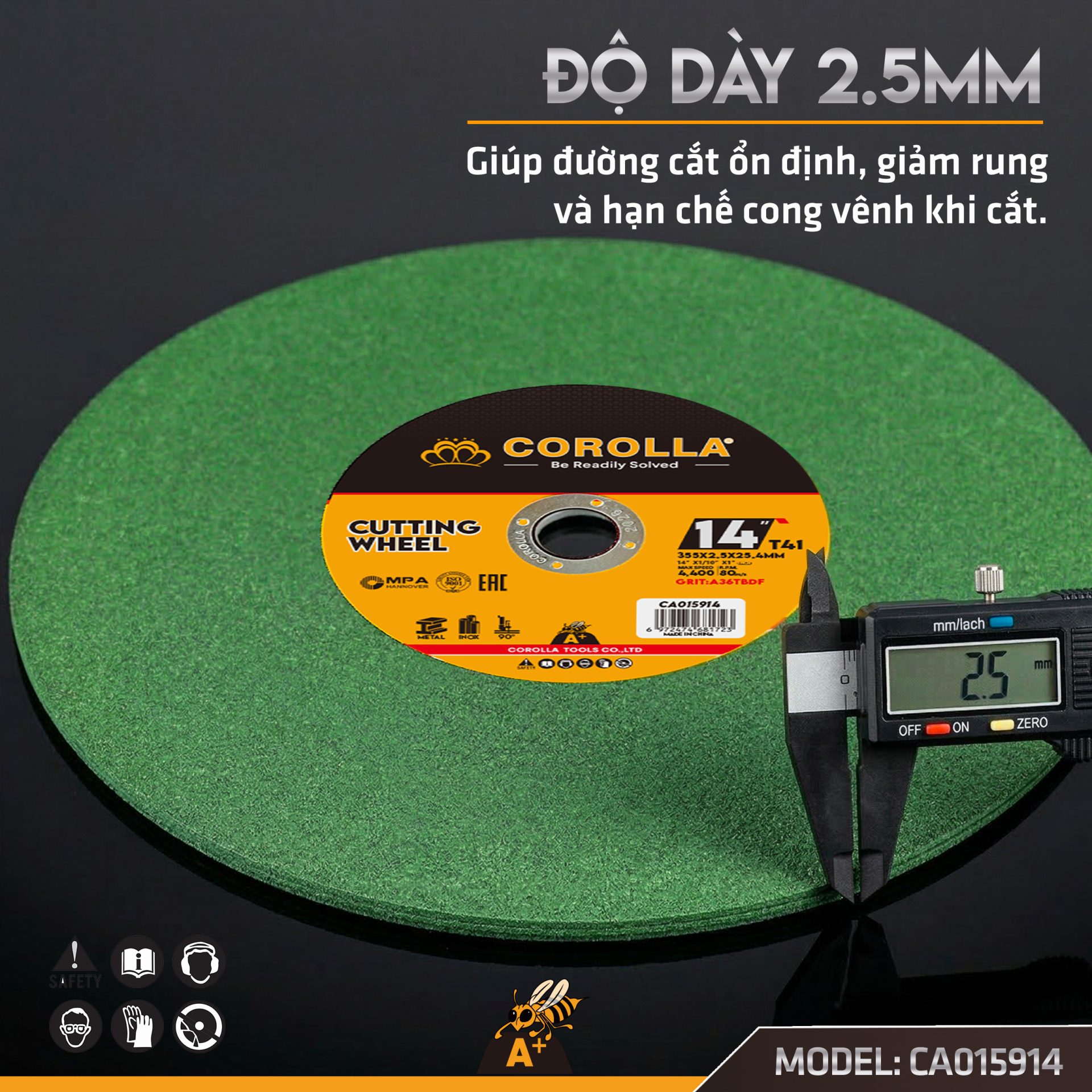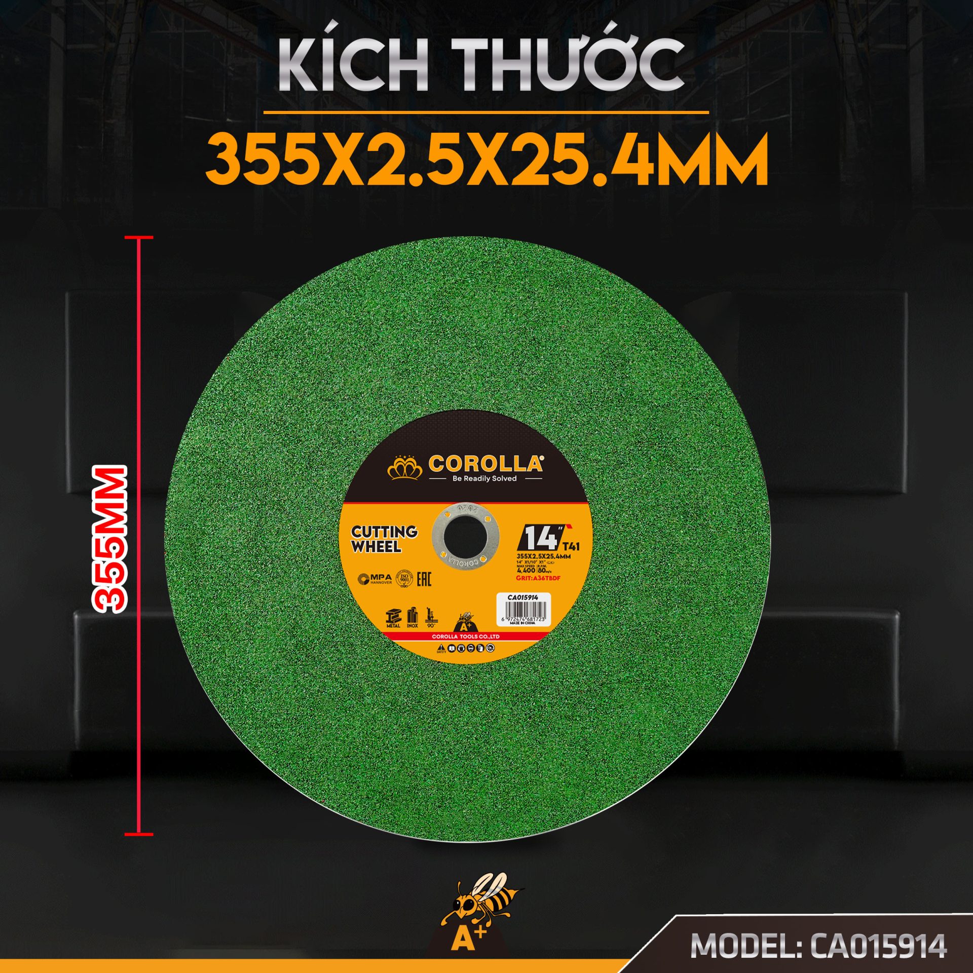 ĐÁ CẮT KIM LOẠI CẮT INOX COROLLA 355*2.5MM (HAI MÀU)