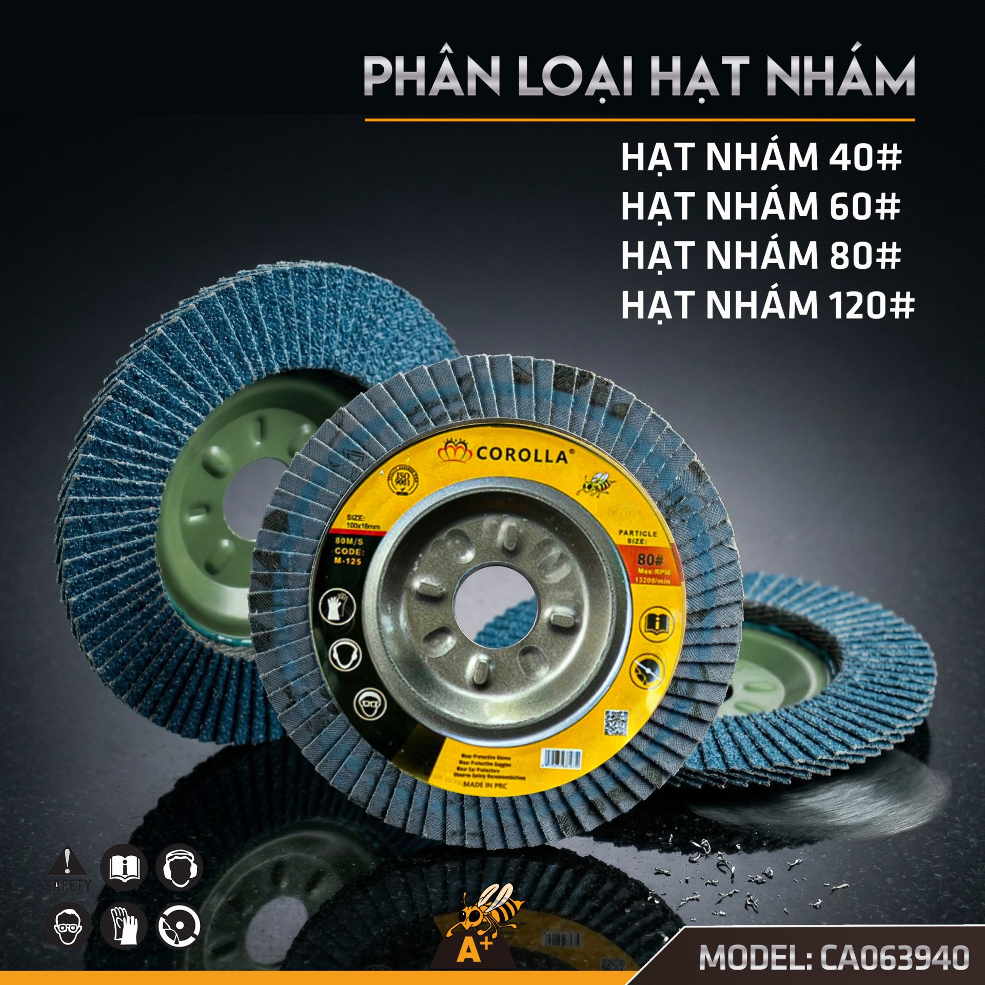 Giáp xếp nắp sắt COROLLA là dòng đĩa nhám chuyên dụng cho các công việc mài phá và xử lý bề mặt kim loại cường độ cao. Sản phẩm được cấu tạo từ 72 lá nhám xếp chồng kết hợp đế sắt chắc chắn, giúp tăng khả năng chịu lực, hạn chế biến dạng khi làm việc nặng, phù hợp cho môi trường cơ khí chuyên nghiệp.