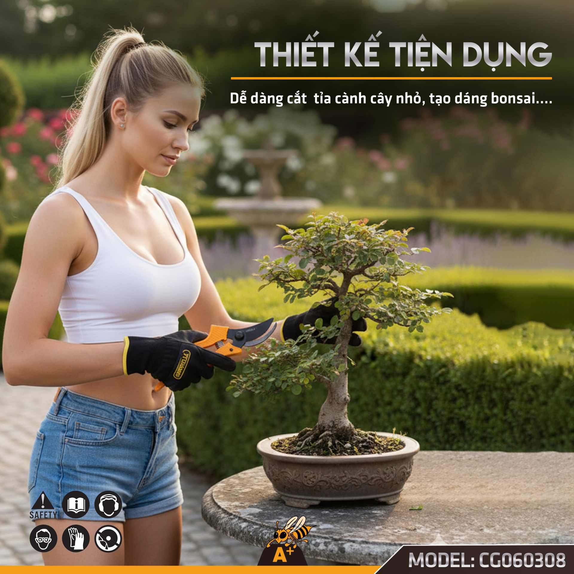 • Làm vườn chuyên nghiệp: Cắt tỉa cành cây ăn quả, tạo dáng bonsai, chăm sóc hoa màu.
