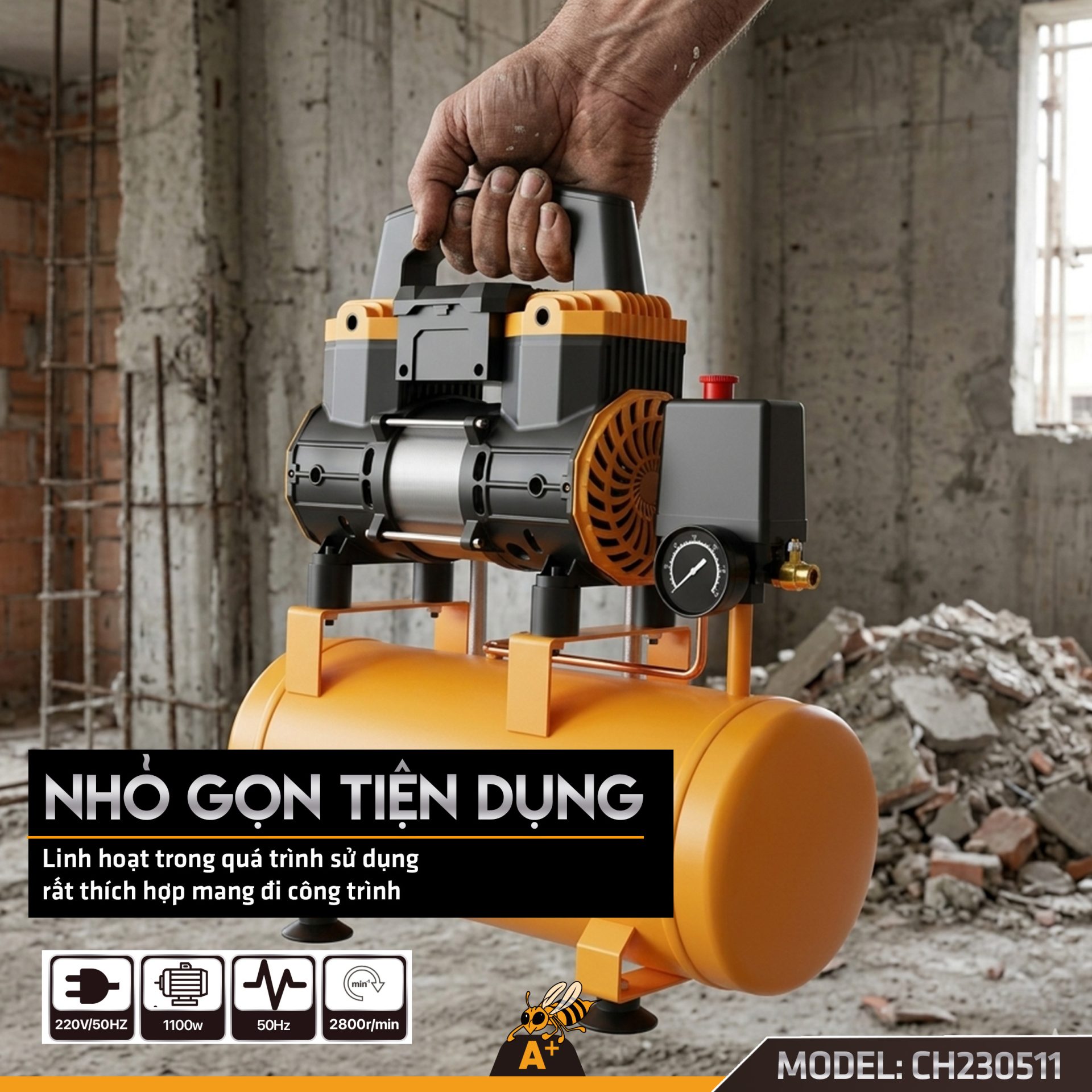 • Vận hành êm ái: Độ ồn cực thấp, phù hợp làm việc trong không gian kín hoặc khu dân cư.