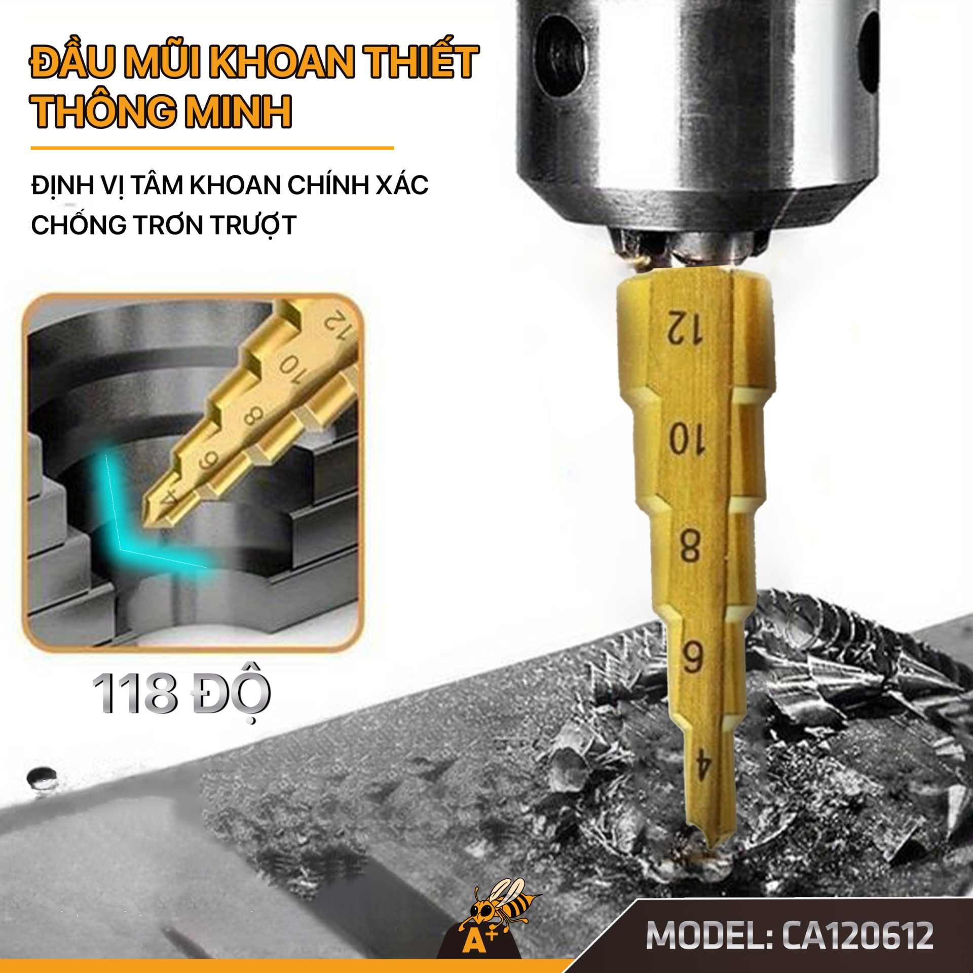 • Công dụng: Khoan lỗ trên sắt thép mỏng, nhôm, đồng, inox, gỗ, nhựa